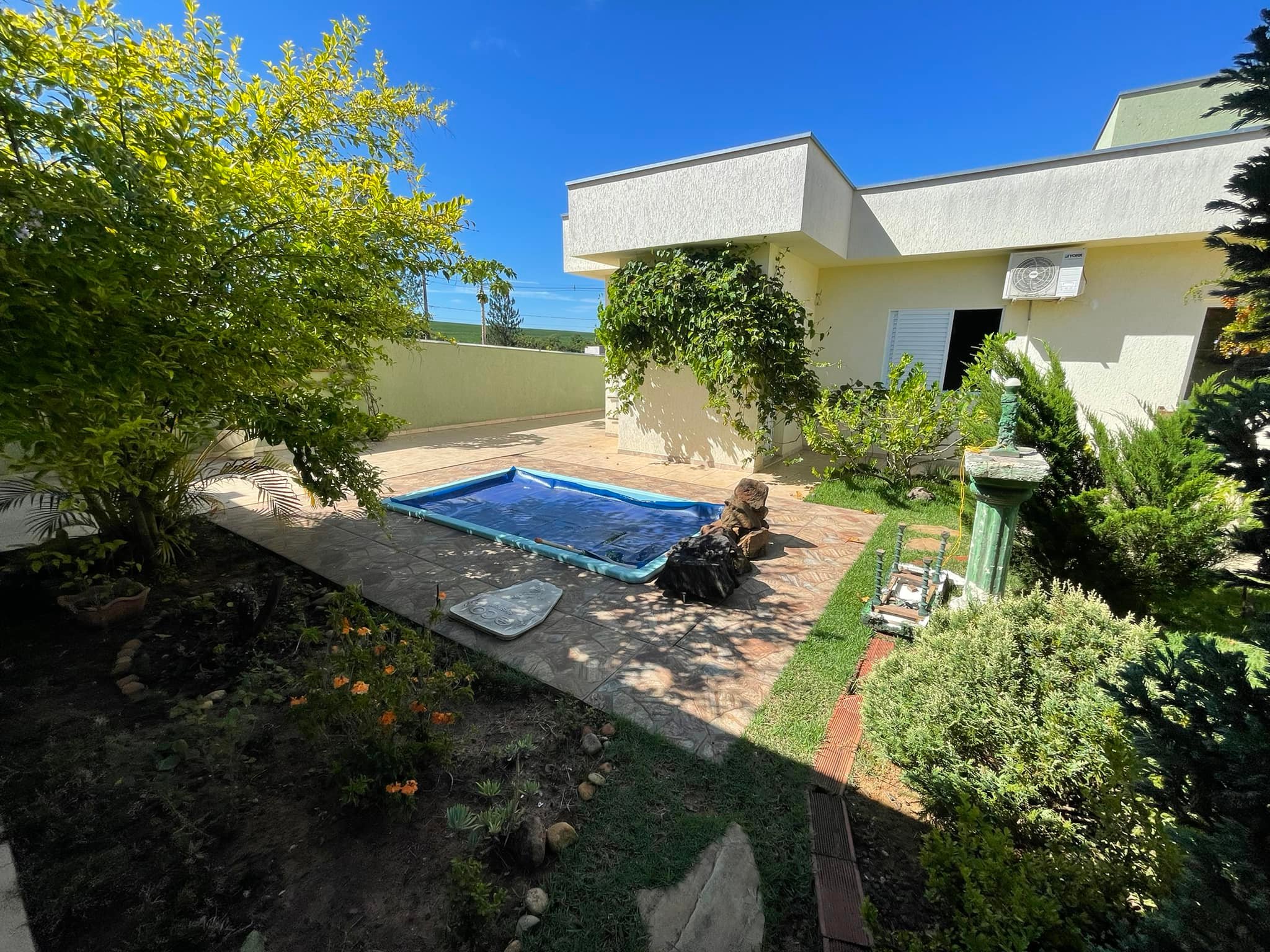 Amplo quintal com lago